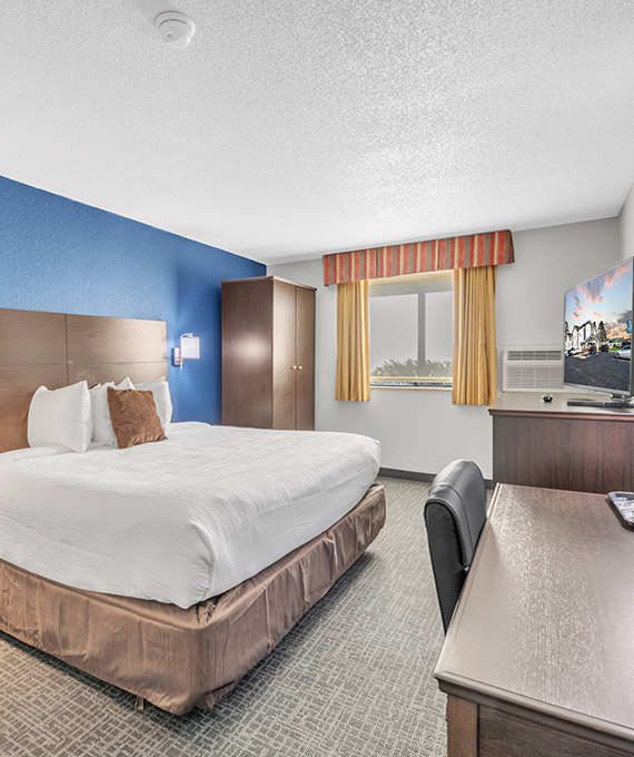 - ADA Guest Room Bathroom Has Clear Floor Space And Is Slip-Resistant